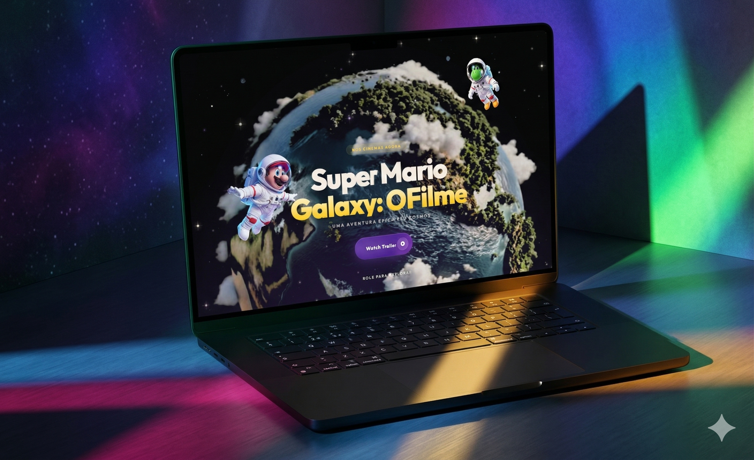 Preview animado da landing Super Mario Galaxy: O Filme — projeto que você vai construir na imersão em 2 dias